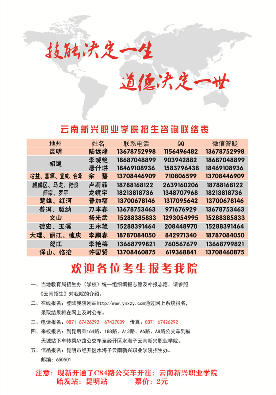 2020年2026世界杯官网各地州招生负责老师咨询联络表及来校地址