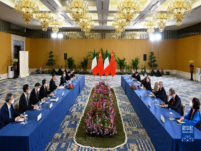 当地时间11月16日晚,国家主席习近平在巴厘岛会见意大利总理梅洛尼。